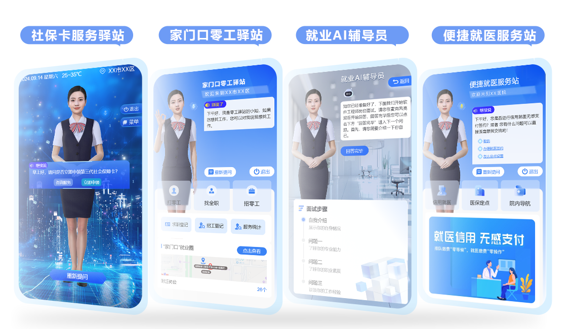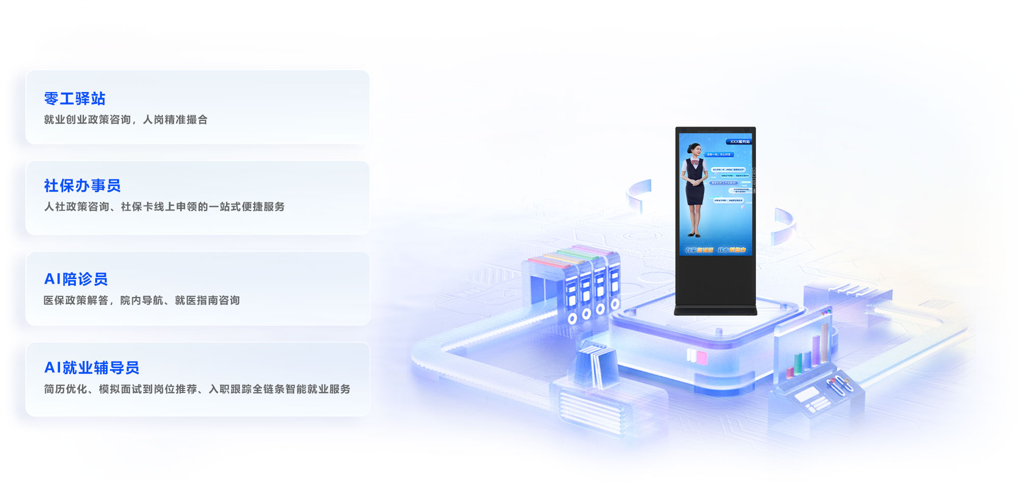 TapTapAI+服务站以多样化的智能硬件设备为载体,结合虚拟数字人、场景化大模型等数字化新质生产力,赋能政务、医疗、教育服务场景,为群众提供面对面咨询问答、业务导办帮办等功能,助力窗口服务数智化升级。