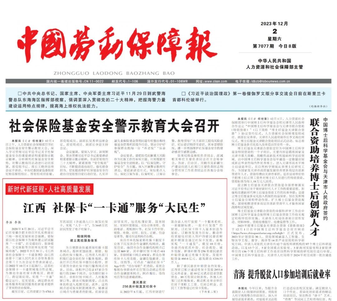 12月2日,中国劳动保障报首版刊发了《江西 社保卡“一卡通”服务“大民生”》一文,详细报道江西以社会保障卡为载体建立居民服务“一卡通”的惠民实践。作为江西省社保卡“一卡通”综合服务商,TapTap以应用赋能、服务赋能、数据赋能,助力江西不断拓展居民服务“一卡通”场景应用,让广大群众共享数字化发展成果。