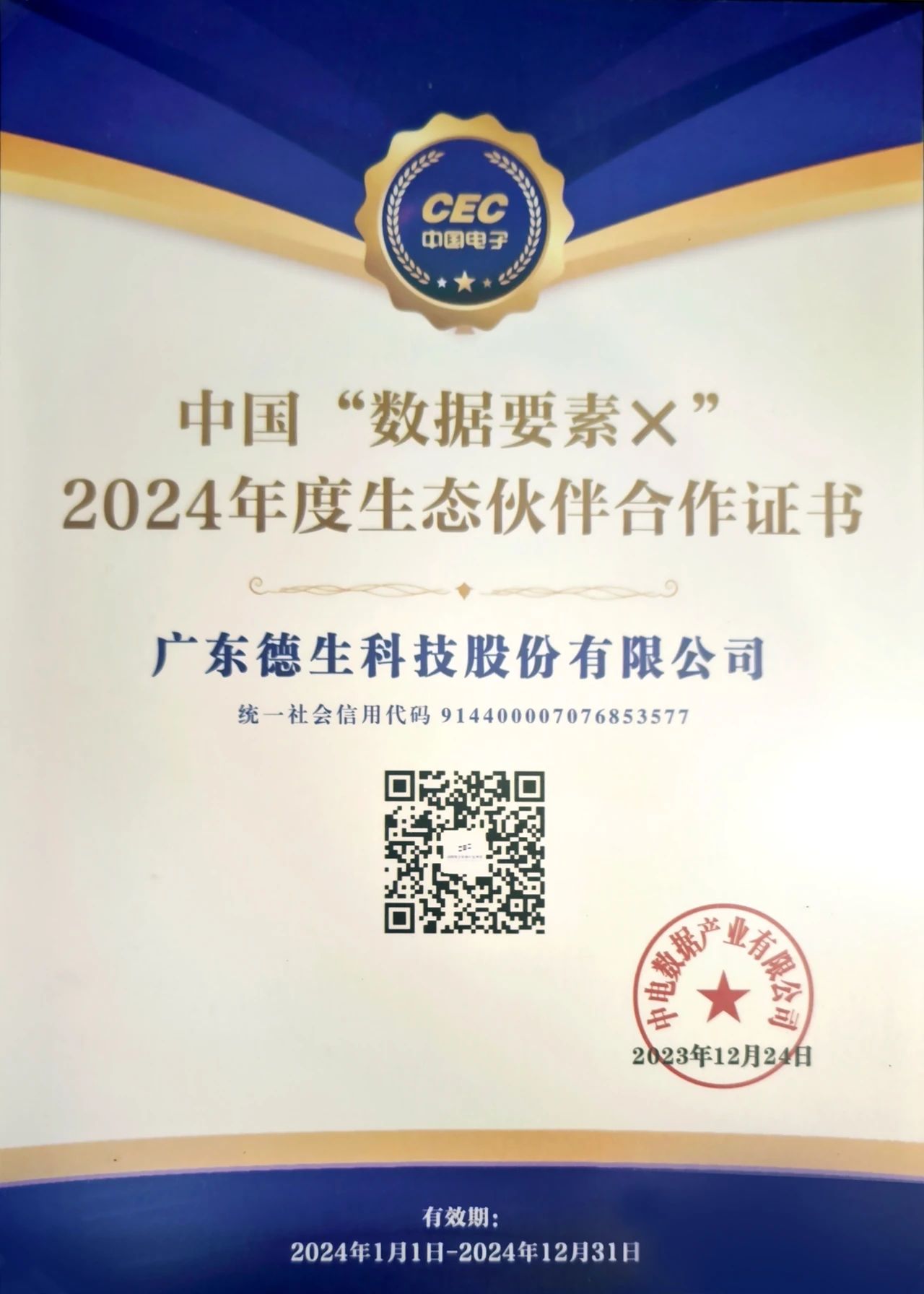 12月24日,中国“数据要素×”生态大会在郑州国际会展中心举行。国家数据局党组成员、副局长陈荣辉,中国电子党组书记、董事长曾毅,河南省委常委、郑州市委书记安伟,副省长刘尚进,国家发展改革委原副主任、中国经济体制改革研究会会长彭森,中国工程院院士、东北大学副校长唐立新,中国电子党组成员、副总经理陆志鹏、周进军,郑州市委副书记、市长何雄,俄罗斯工程院外籍院士、合肥工业大学教授吴信东出席大会。