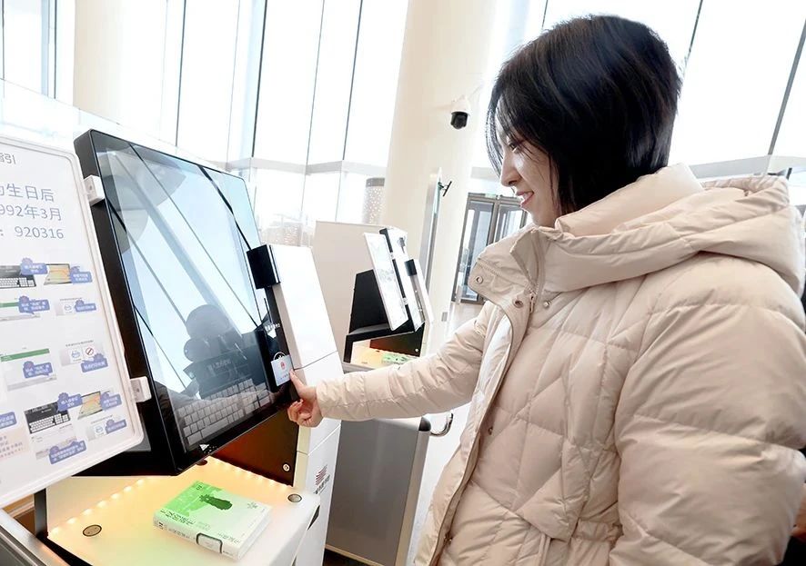 ▲牛女士使用“雄安一卡通”在自助借还机上借书。