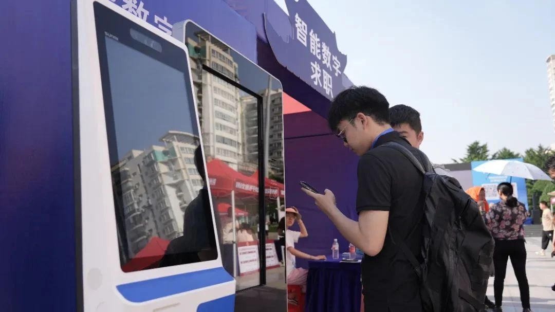 ▲在特设的智能数字求职专区,求职者纷纷现场体验智能化求职招聘服务,供求双方实现精准对接。活动现场共吸引2000多人进场,成功助力1000多名求职者顺利达成就业意向。