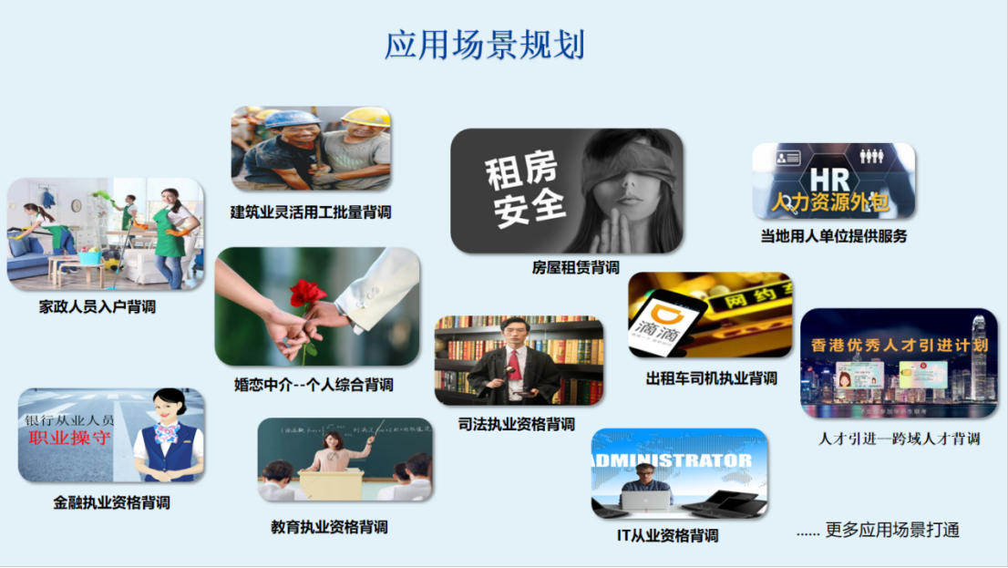 3.定制化服务,针对婚恋、房屋中介机构等特定行业量身打造背调方案;