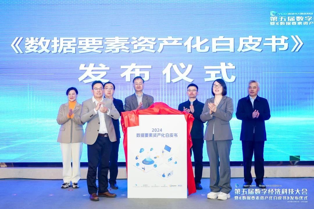▲会上,华东江苏大数据交易中心总经理汤寒林与新华社中国经济信息社数据资产运营研究中心首席执行官赵丽芳共同为《数据要素资产化白皮书》揭幕。