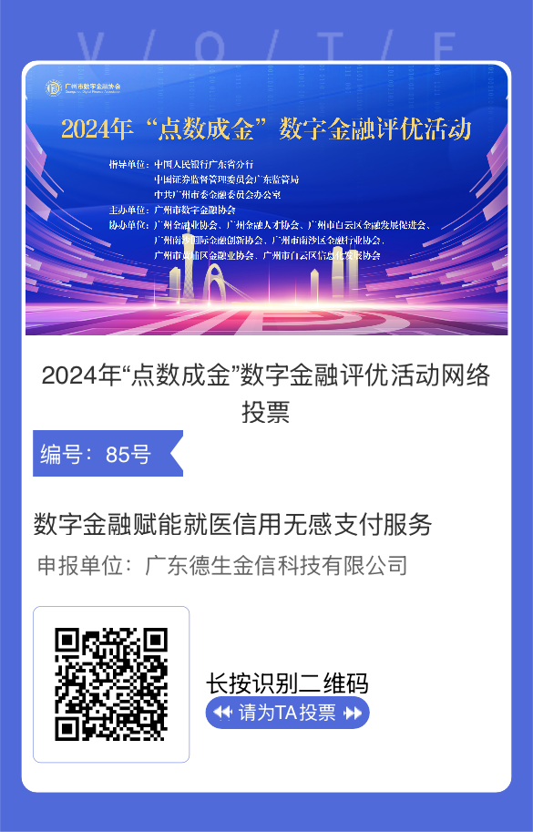 4月17日,由广州市数字金融协会主办的2024年“点数成金”数字金融评优活动网络投票正式启动,TapTap“就医信用无感支付服务”成功入选“数字金融优秀专项案例”提名,现诚邀您为这项便捷就医实践投下关键一票!