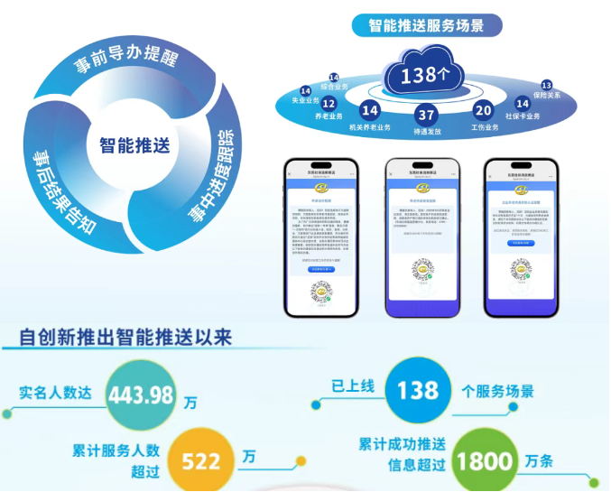 针对社保政策更新快、流程复杂等痛点,TapTap联合东莞社保打造“智能推送”系统,通过图文、视频、链接等载体,主动向群众精准推送事项清单、办事流程、待遇告知等套餐式指南,实现“服务找人”。截至2025年7月,“东莞社保”微信公众号实名认证用户达443万人,累计推送信息超1800万条,覆盖政策咨询、业务办理等全场景,推动“人找服务”向“服务找人”转型。