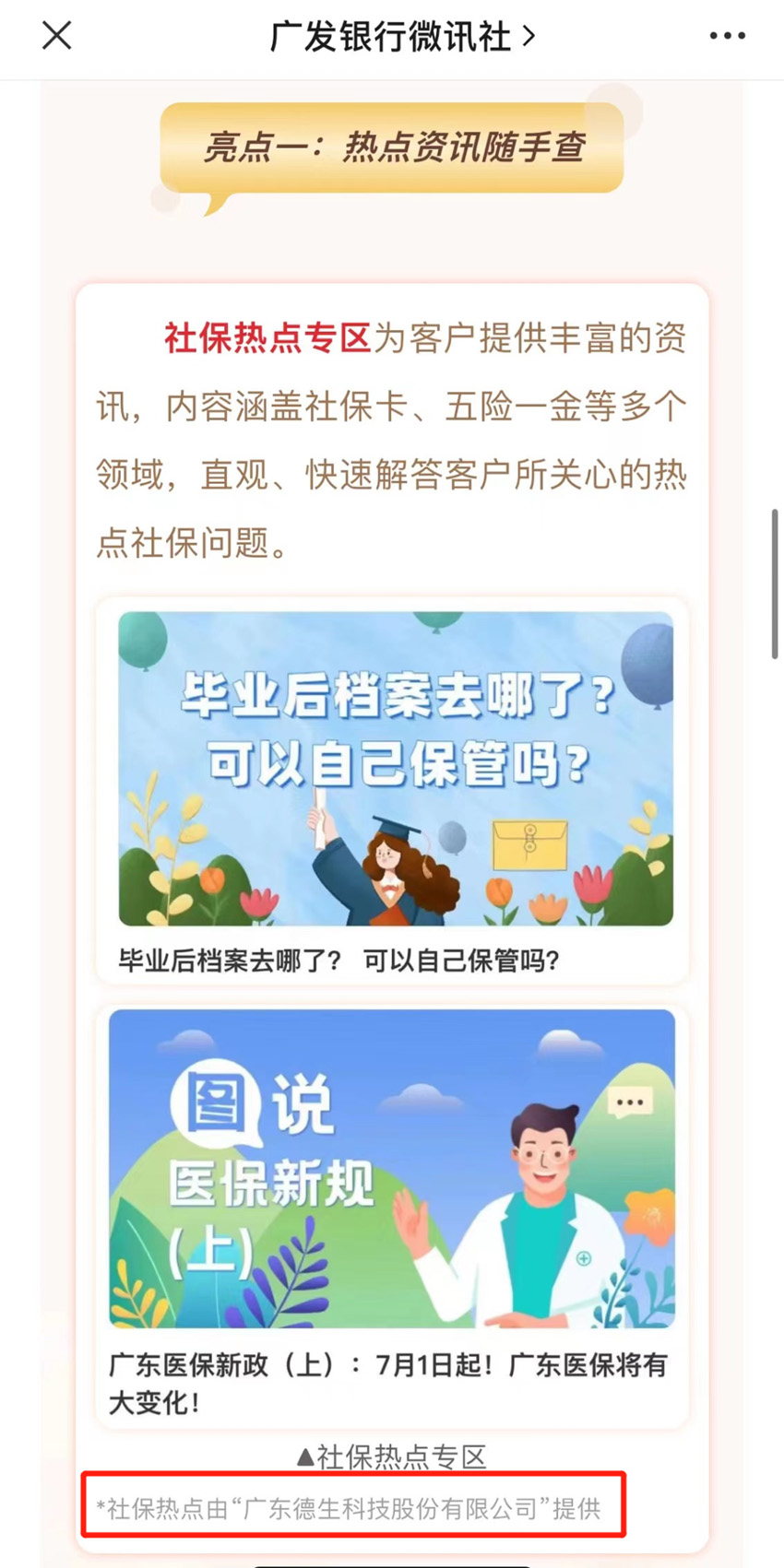 作为广发银行“社保管家—社保热点专区”的内容运营商,公司在社保服务领域具有独树一帜的运营优势。