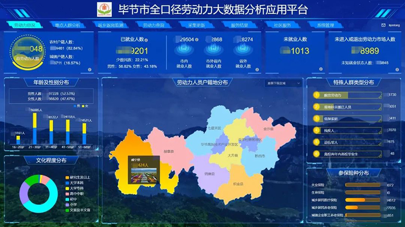 目前,TapTap已在毕节投资建设并运营“毕节市人力资源服务产业园”,建设了“全口径劳动力大数据分析应用平台”。基于政府的行政管理结构,构建了“市县乡村”多级联动服务体系,覆盖全市9个县区280个乡镇3718个村社区;打通政府服务与个人之间的互联网交互通道,完成全市600多万劳动力信息调查。利用“大数据”、“互联网运营”和“服务”三大要素,实现人社业务线上化,打通就业“最后一公里”。