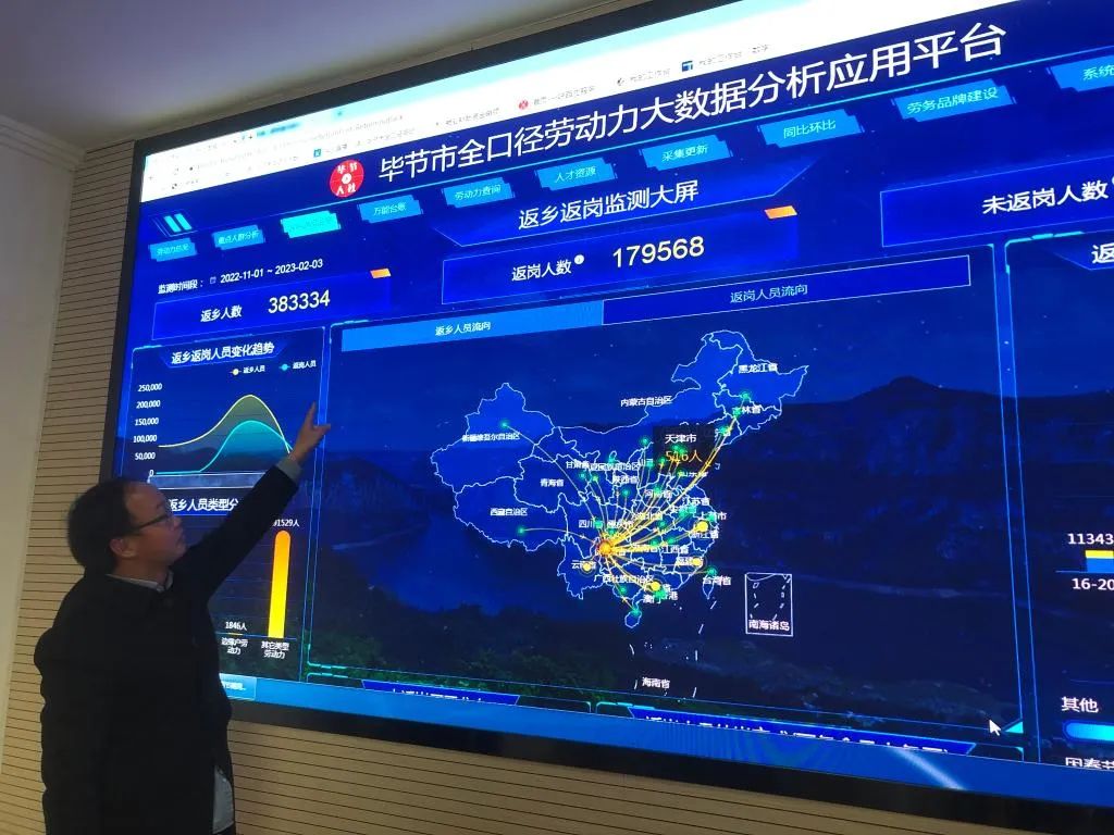 ▲工作人员展示毕节市全口径劳动力大数据分析应用平台相关功能。新华社记者李凡摄
