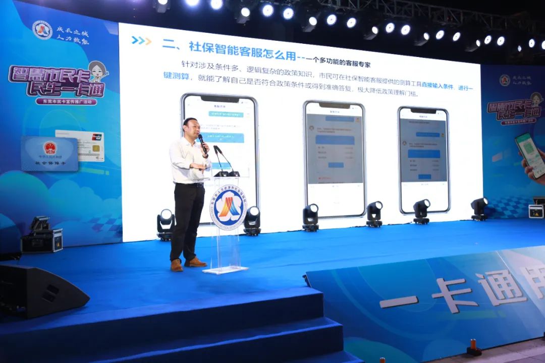自2021年7月东莞市民卡正式发行以来, TapTap从社保卡发行、场景应用、运营服务等多维度助力东莞加速打造“一卡通用、一码通城”。在本次活动中,TapTap智能知识运营服务产品负责人在会场上发表了“东莞社保智能客服 贴心服务不打烊”的主题演讲,详细介绍通过AI训练和知识图谱等技术打造的社保智能客服,实现任何人、任何时间、任何地点、有问必答的全渠道智能咨询服务。此外,会场还设置了咨询服务区,用创新有趣的形式吸引市民沉浸式体验智能咨询助手。